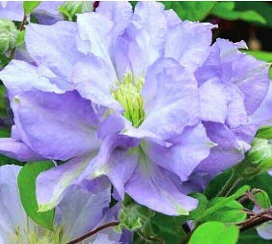 Польский сорт в продаже с лета 2012 г. Цветки диаметром 10-12 см, бело-голубые, махровые, шарообразные. А в период полного цветения – полумахровые (30-50 чашелистиков) как на старых, так и на новых побегах . Обсыпан цветами почти от основания растения в июне-июле и чаще всего повторяет цветение в августе, но уже менее обильное. Листья одиночные либо тройчатосложные длиной 7-10 см, шириной 4-6 см, светло-зеленые, блестящие с пурпурными ножками и краями молодых листьев. Достигает высоты 2м.