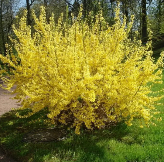 Невысокий кустарник высотой 1 м, с раскидистыми поникающими ветвями. Наиболее декоративен весной, когда побеги покрываются яркими цветами золотистых оттенков, а также осенью – благодаря эффектной пурпурно-оранжевой окраске листьев. Листья на концах резко-заострённые, тёмно-зелёные, осенью окрашиваются в тёмно-пурпурный с оранжевым цвет. Цветки тёмно-жёлтые, до 3 см, многочисленные по всей длине побегов. Самая зимостойкая и самая раннецветущая из всех форзиций. Устойчива к вредителям и болезням.